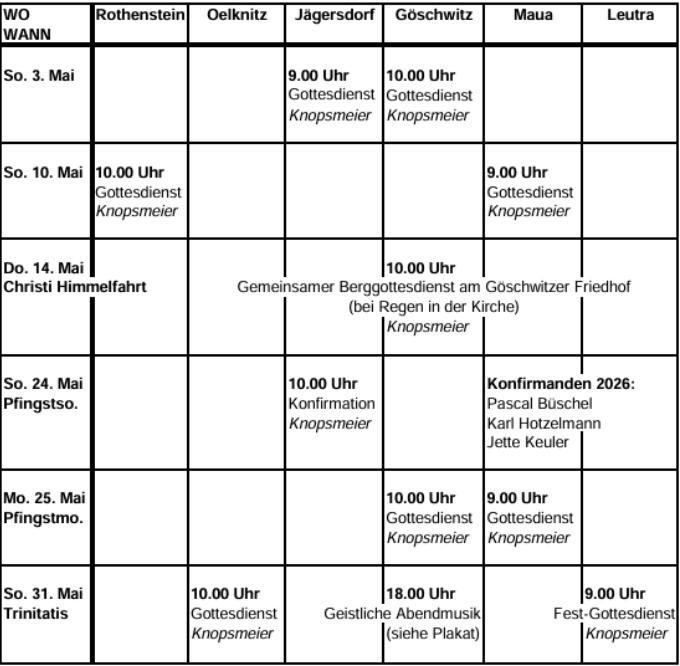 Christi Himmelfahrt 10:00 Uhr Gemeinsamer Berggottesdienst am Göschwitzer Friedhof (bei Regen in der Kirche)
