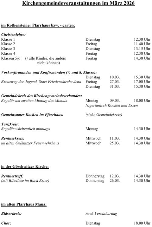 Spenden für Ihre Kirche oder anderekonkrete Anliegen versehen Sie bittemit ihrem Namen, der Angabe „KGV Göschwitz-Rothenstein“ sowieeindeutig mit dem Verwendungs-zweck. Diese werden dann auch aus-schließlich für diesen verwendet.Die Kontoverbindung für Spendenfinden Sie hier.